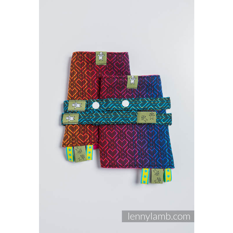 The Boba Organic Teething Pads are made to snap around the shoulder strap of your Boba Baby Carrier.