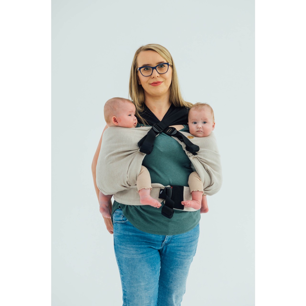 To carry children separately, unclip both hip belt buckles - you'll get two independent, identical in design and functionality LennyHip hip carriers. This allows children to be carried together - by one person, as well as separately - by two wearers, depending on the need.