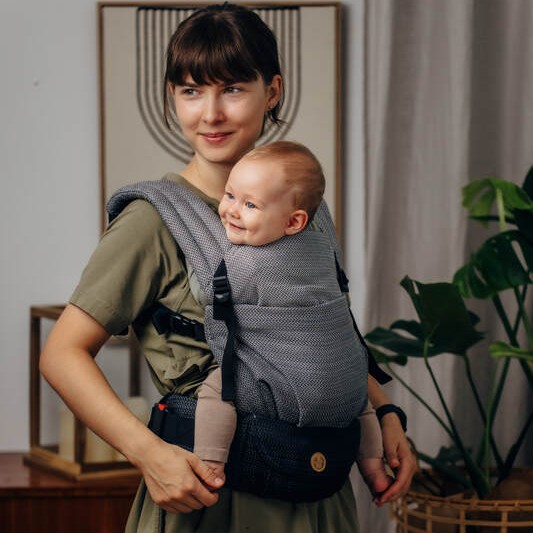 Stable and comfortable, adjustable hip belt and flexible shoulder strap allow for easy and quick adjustment of the carrier to parents of different body types.