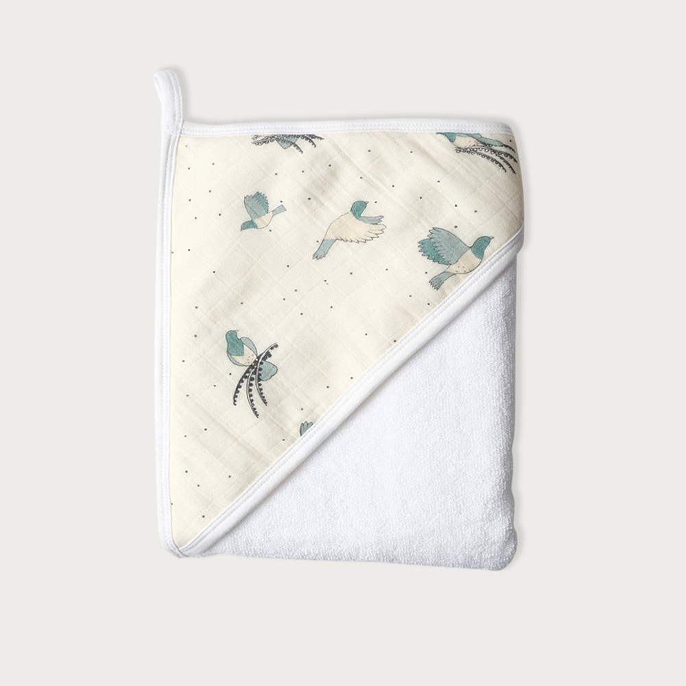 The cosy hood keeps baby nice and warm while you dry. Features rib binding with a loop at the top corner for easy hanging.