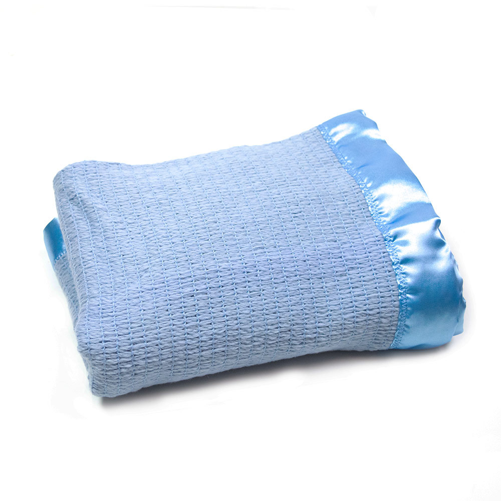 This Aircell/Thermacell Wool Baby Blanket features a cell-like weave that allows maximum air circulation to efficiently regulate body temperature. While light and airy, cellular blankets have all the strength and robustness offered by wool. These Thermacell Aircell Weave blankets use only fine merino wool, grown in New Zealand. The fine strand wool fibres are loosely spun into a double knit bulky yarn and woven by a crochet machine into a blanket of rectangular woollen cells. The fabric material is brushed to give the fibres softness and mass. This creates a light weight and highly effective thermal insulation cover for babies and children, both in cold and hot climates.