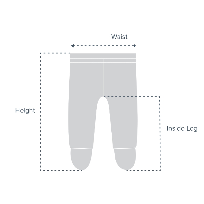 | Size | Height/Outside Leg* | Inside Leg | Waist** |