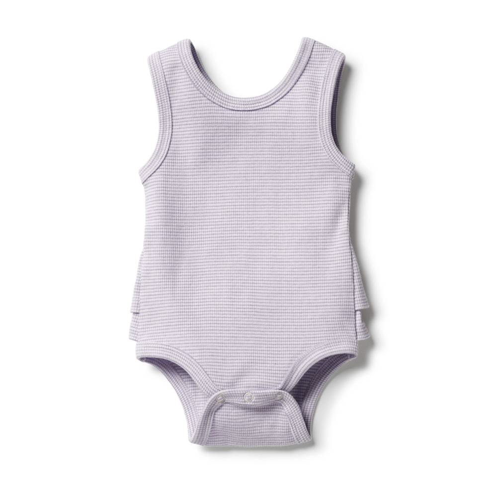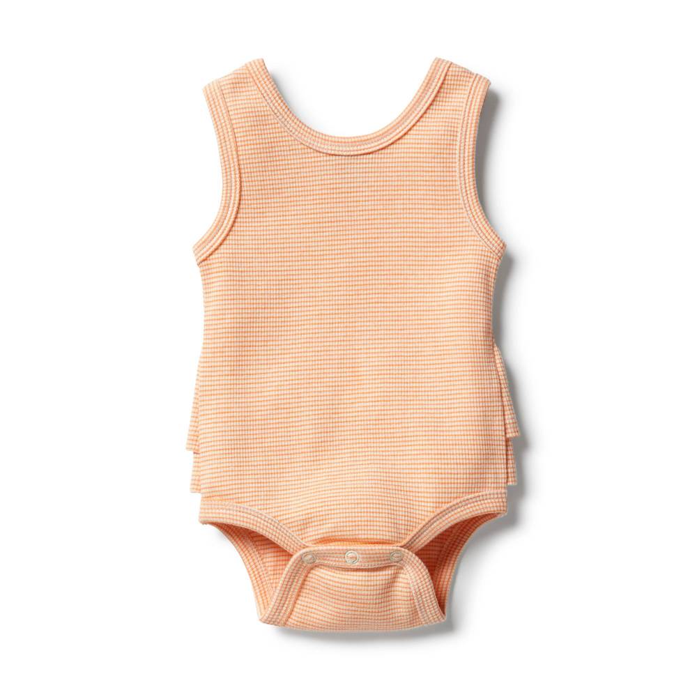Wilson + Frenchy Wilson & Frenchy Ribbed Ruffle Bodysuit $34.95 This beautiful Wilson + Frenchy ruffle bodysuit is made from a beautiful ribbed GOTS certified cotton. A sleeveless tank bodysuit featuring a two-tiered ruffle waist detail and a snap crotch opening for easy nappy changes...