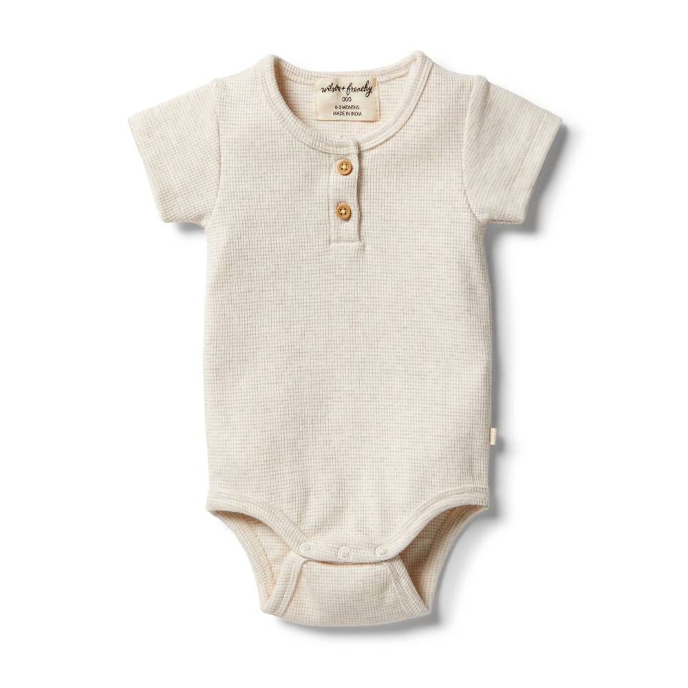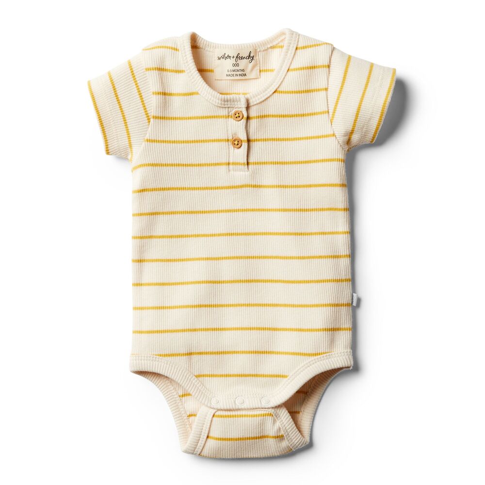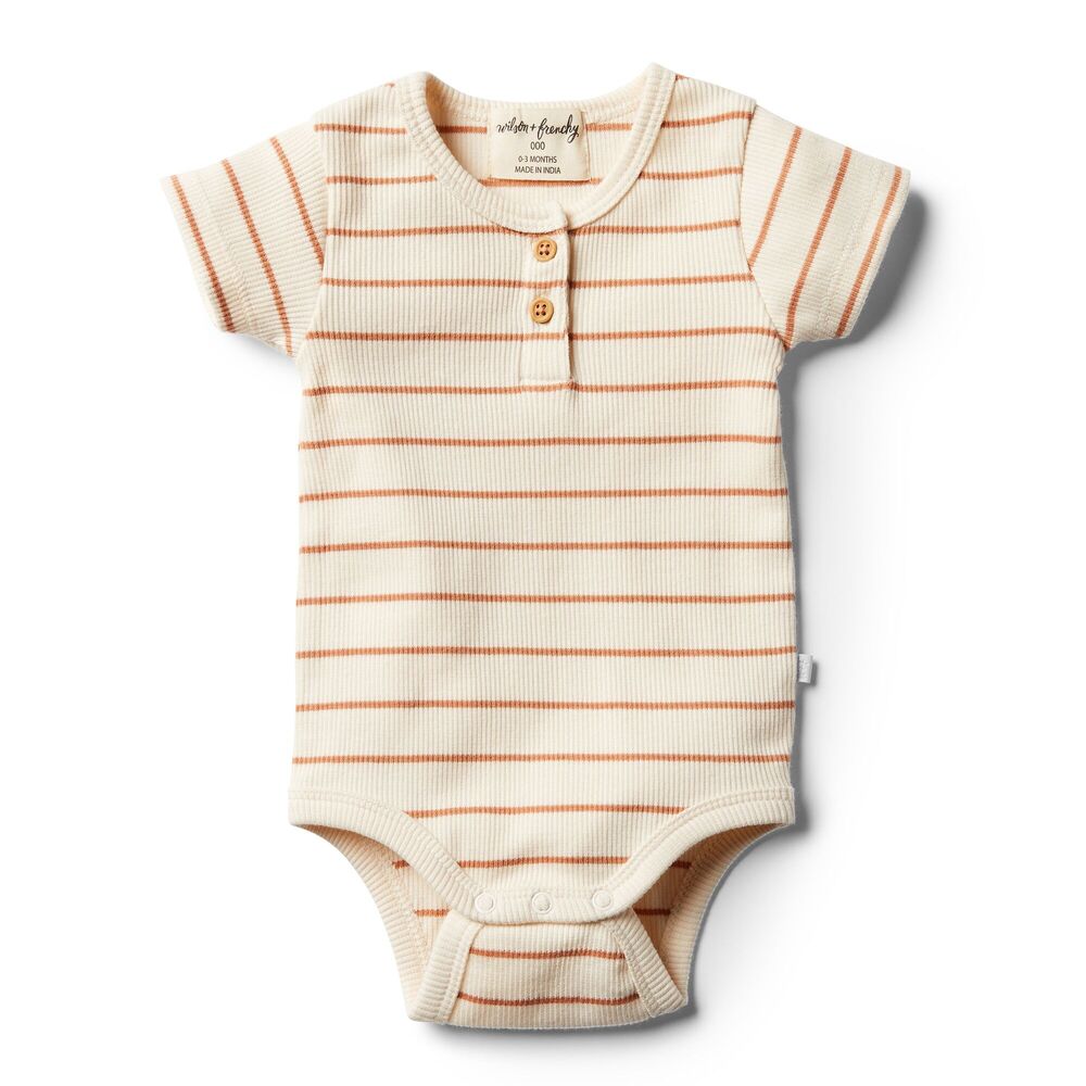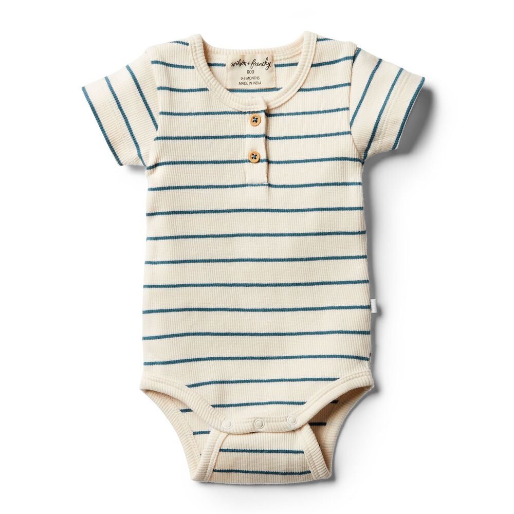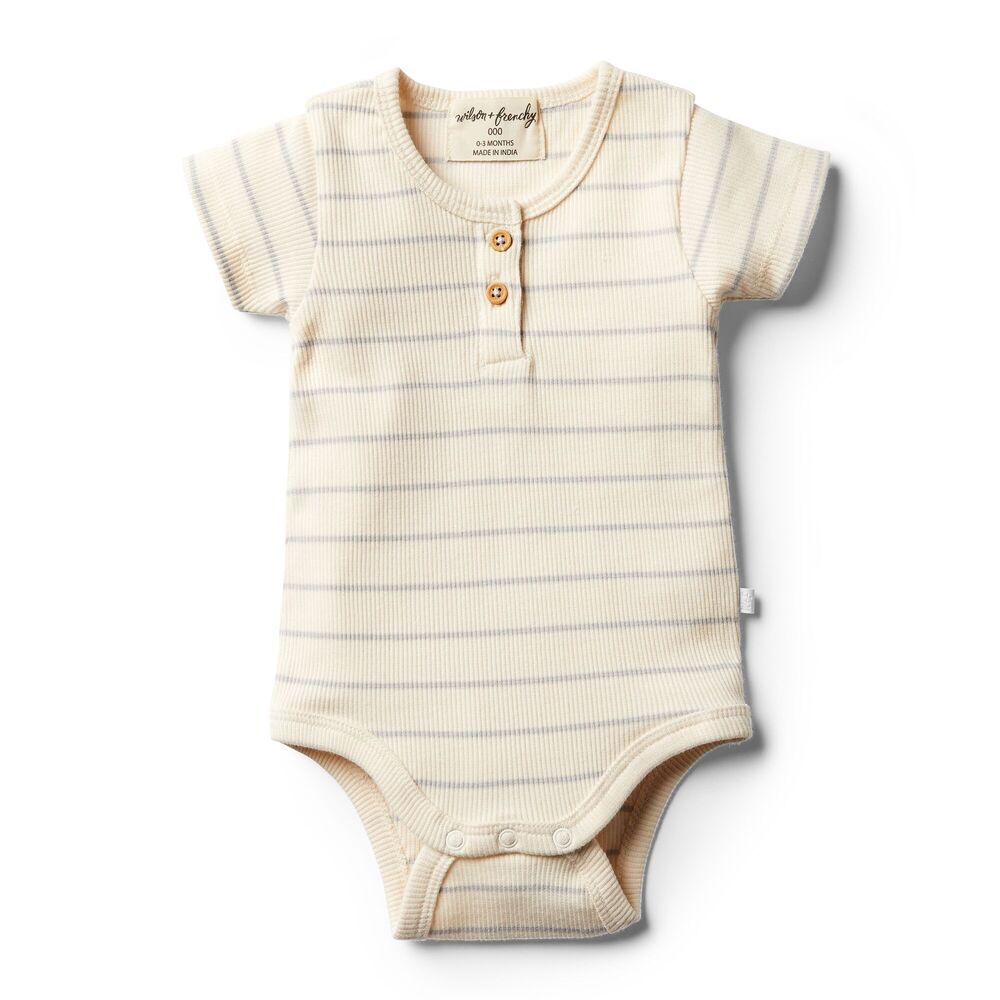 Wilson + Frenchy Wilson & Frenchy Ribbed Short Sleeve Bodysuit $12.00 $29.95 Beautiful bodysuits from Wilson + Frenchy are made from the softest cotton mix, featuring gorgeous rib stripes and snap stud closure at crotch for easy change time. HighlightsRib StripeSnap stud closure at crotchDesigned in...