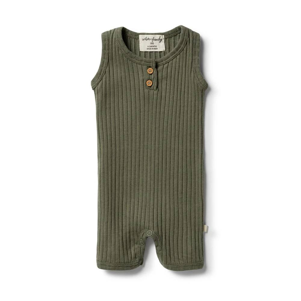 Wilson + Frenchy Wilson & Frenchy Ribbed Growsuit $42.95 This Wilson & Frenchy Rib Growsuit is made from a soft GOTS Organic Cotton. It is a sleeveless, boyleg design, relaxed in fit and features a placket opening for easy dressing and a snap crotch opening for easy nappy...
