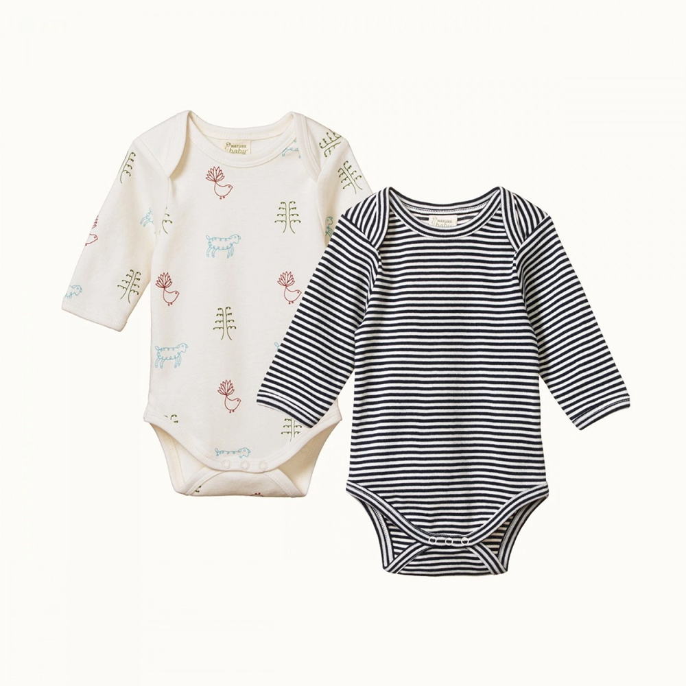 Nature Baby Organic Cotton L/S Bodysuit - 2 pack $39.95 These lovely, soft long-sleeve bodysuits will see your little one through the colder months in style. Cuddled up in 100% Organic Cotton, your baby will be snug and look completely adorable! They feature convenient snap domes...