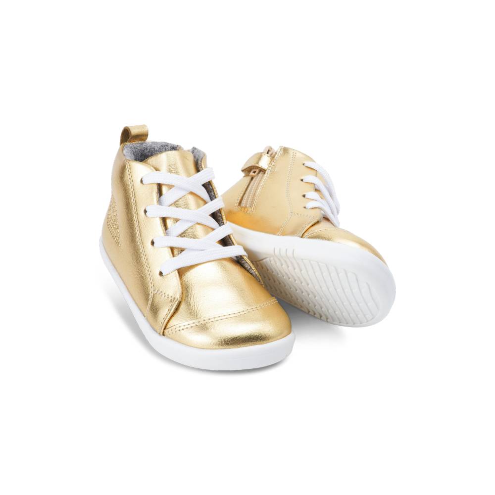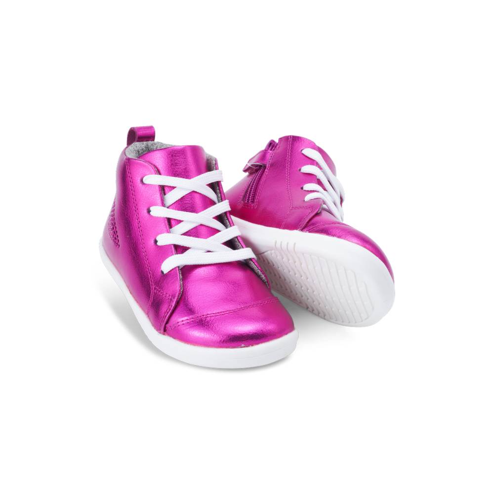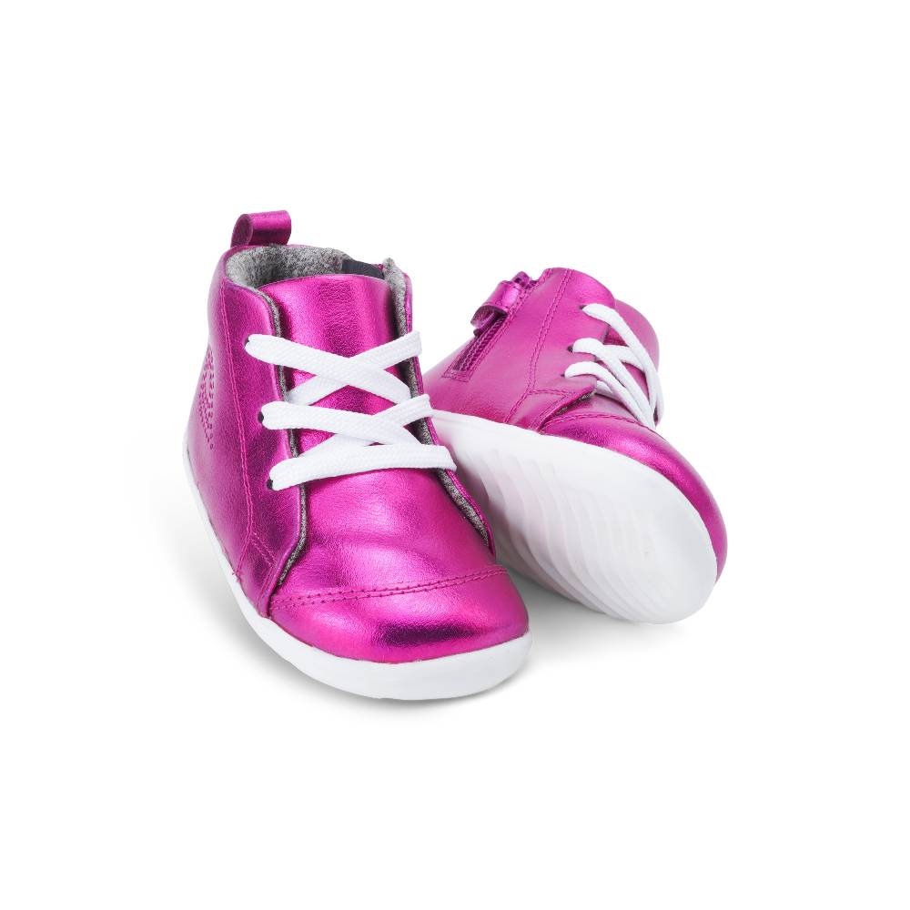 Bobux Step Up Boot - Alley-Oop $79.95 The Alley-Oop is the first ever basketball-inspired, lace up boot from Bobux. In super cool metallic colourways, white contrast laces and sole, these boots are perfect for a street-styled look. A dual opening of adjustable laces...