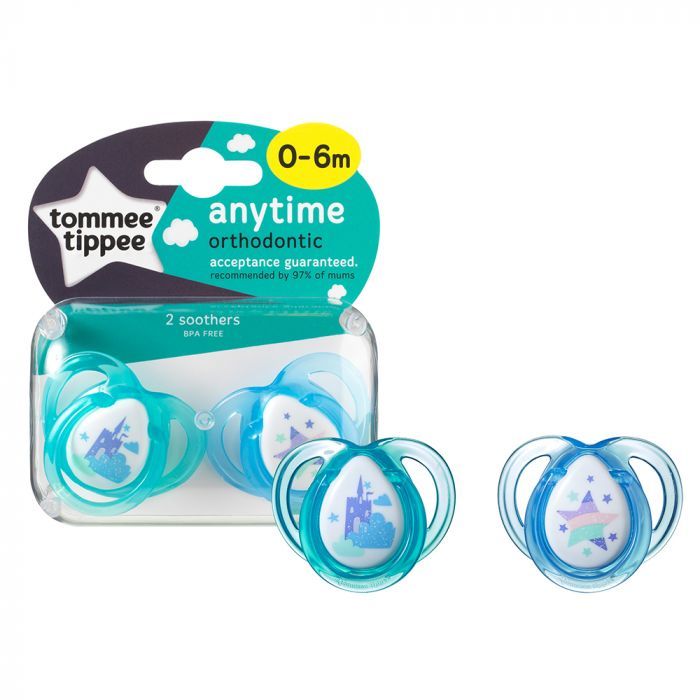 Tommee Tippee Anytime Soothers - 2 pack $14.95 Closer to Nature Soothers from Tommee Tippee, feature a symmetrical orthodontic nipple that has been specially designed to help optimise baby acceptance.Symmetrical Orthodontic ShapeReversible Silicone Nipple designBPA...