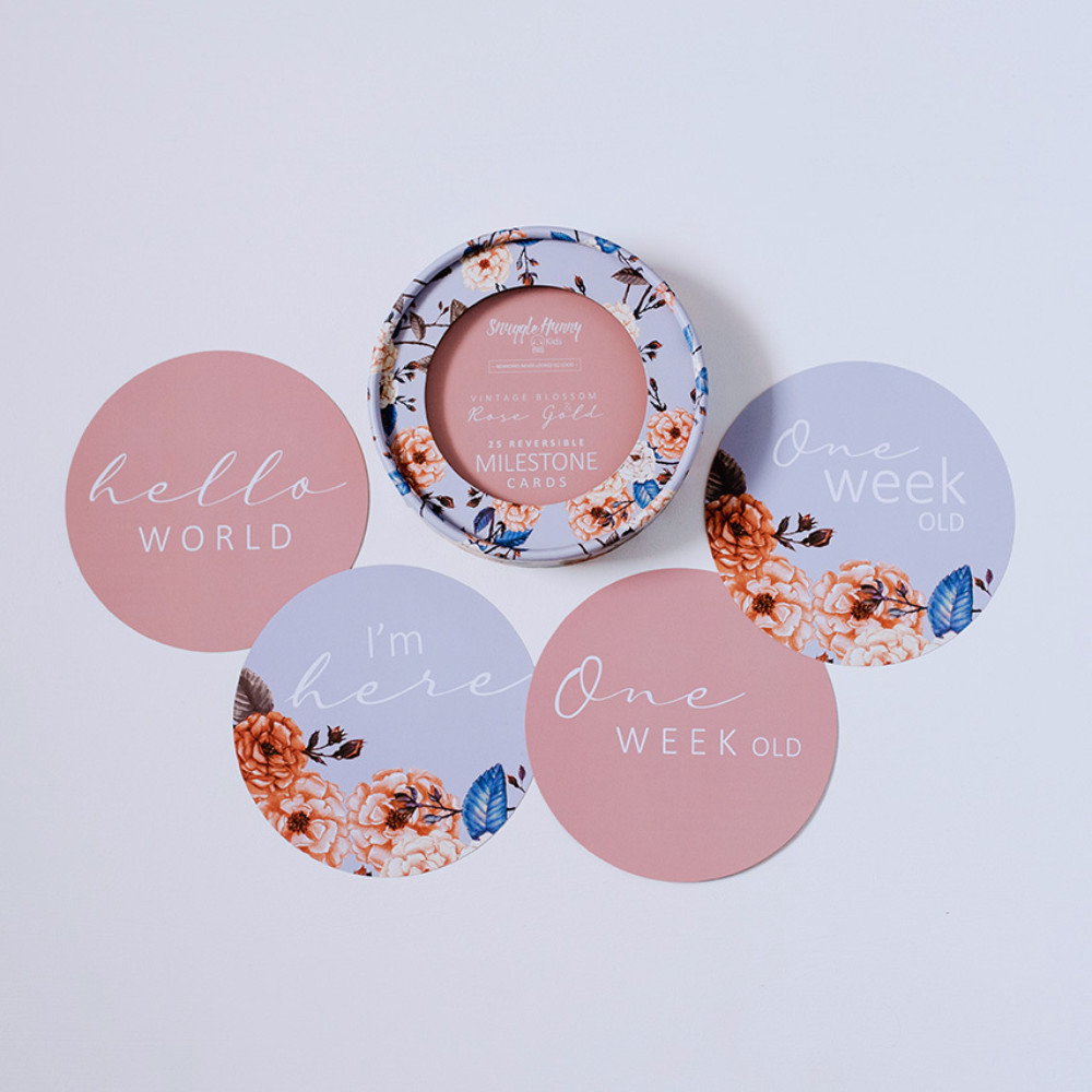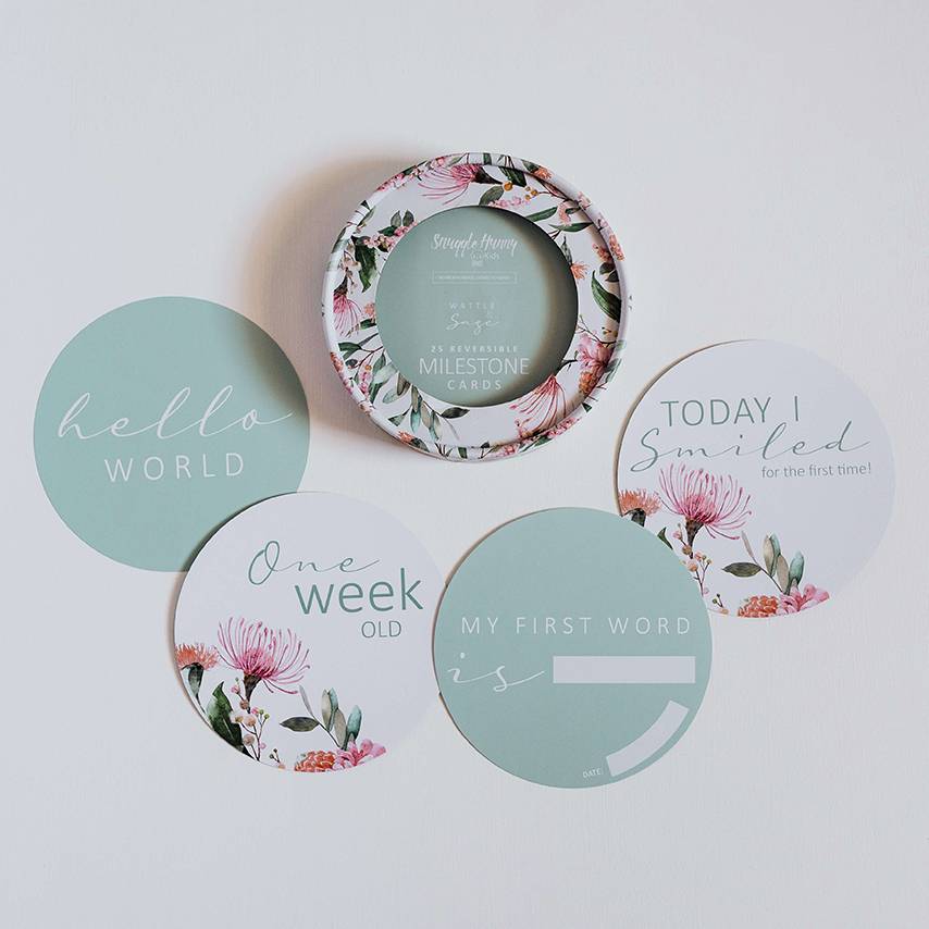Snuggle Hunny Kids Reversible Milestone Cards $34.95 Snuggle Hunny Kids! Capture your baby's milestone moments and document their 'firsts' in photographs to treasure for a lifetime with our reversible milestone cards.The 2 in 1 pack contains 25 Reversible milestone cards that...