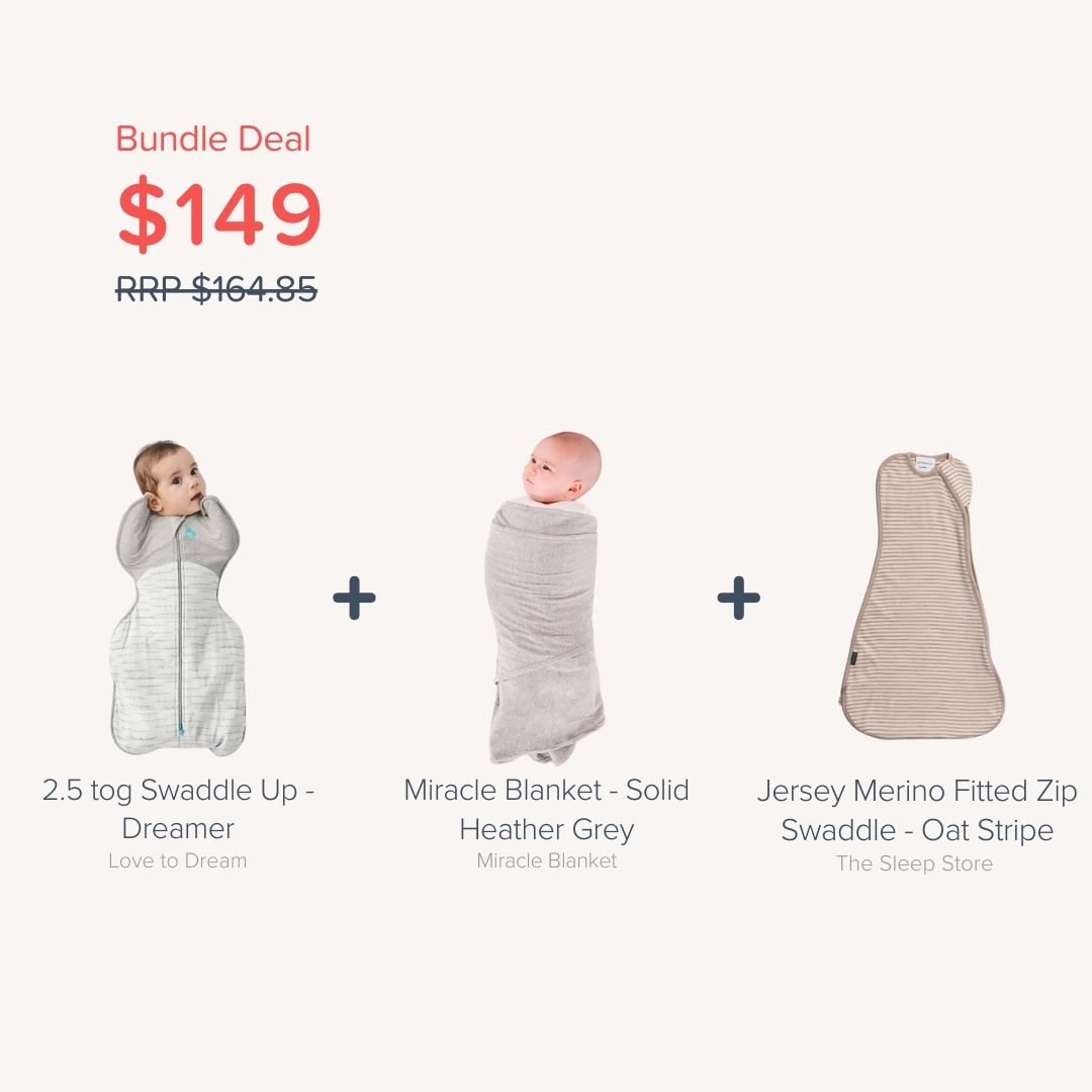 Fitted baby swaddles are easy to use and can help baby sleep better by helping to control the startle reflex. The Sleep Store are Australasia's experts in swaddles and we have a wide range of easy to use fitted swaddles. From arms up to arms down, legs in to legs out through to sleeping bag swaddles, there's a fitted option for every baby. We can help you choose the perfect swaddle for your newborn right up to when you're transitioning from swaddling and moving into a sleeping bag. We have all the top brands of fitted swaddles, such as Love to Dream, ergoPouch and our most recommended Miracle Blanket. There are cotton or merino options, in a range of weights depending on your baby's room temperature. We also have our beautiful organic cotton fitted zip swaddles, with a handy double-ended side zip for easy night nappy changing. Read our swaddle buying guide for help choosing a swaddle style that's right for your and baby.